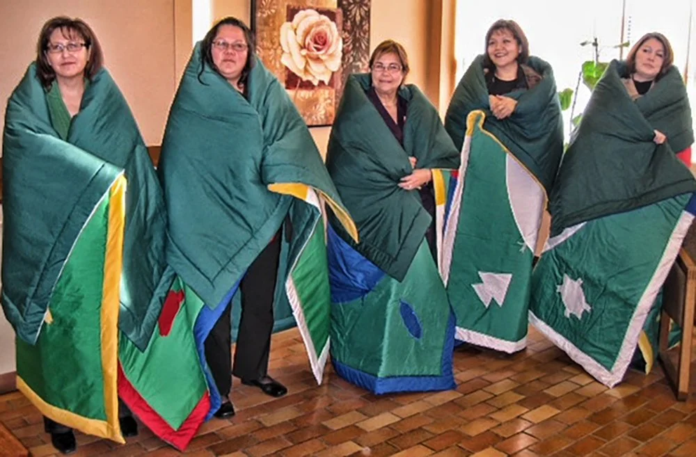 [1] Receiving a Pendleton blanket (or another blanket of special significance) is an oral Cree tradition – a ceremony that has been practiced for centuries. There are a great number of details and layers of understanding of the significance of this gift. Being wrapped in a blanket is one of the highest honours that can be bestowed upon a person.